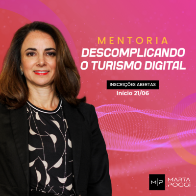 Na minha nova mentoria “Descomplicando o Turismo Digital” vamos olhar as tendências, desenhar a melhor estratégia para sua empresa e definir as ferramentas você deve explorar para chegar lá. Bora transfomar sua empresa? Clique aqui e saiba mais